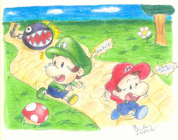 So cute!!! I love little baby Mario and Luigi!!! Awesome pic!!