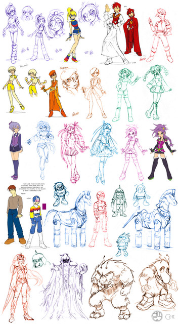 Scratch the grid. It works better in pages.This one's mainly character and group shots I already had on my computer, so you've seen almost all of these. I'm not drawing anything again if I don't have to.