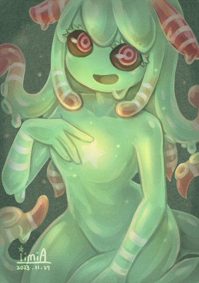 #slimegirl #digitalart #anime #animedrawing #cutekawaii #characterdesign #animegirl #alien #digitial #original #species #watercolor #goobug #slimesect