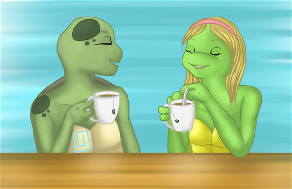 My second request for *Flashhedgehog of her Laura and Donatello. This was fun to draw ^0^ And the second time I've drawn one of the canon boys *ahhh* I think he looks okay (bearing in mind that his back looks preggers cause of the shellPose is from Maison Ikkoku which is AMAZING! I've used this pose in a drawing before, not on DA but for an ooold Yu-gi-oh fan char *shame* :3