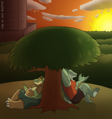 "Bandamookan residents, JQ, Pedro, & RP relax under a tree along Pete's Creek in the Mutton-Jeff Forest, and they are definitely not alone!"Good night, this pic too a while to do...but I'm happy with the results! I've gotta thank for his advice on making the picture with "cooler colors" for the shade.