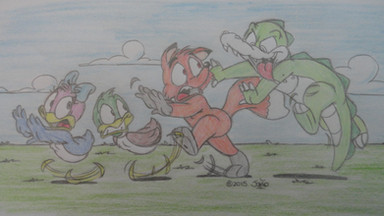 I wanted to do more of an action-y scene with an odd perspective. It took me a while to do, lots of frustrations, but I think it came out pretty decent. Maybe I'll revisit this one again in a few more years.