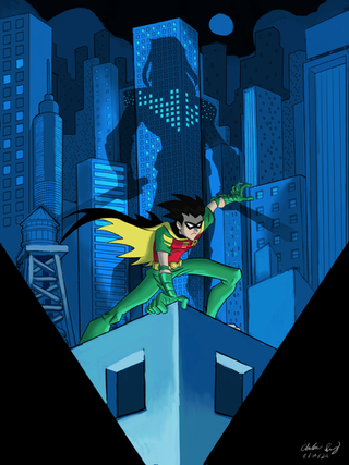 Commission for : Her DC Oc Owletta with Robin/Damian Wayne in a patrol on the roftop of Gotham (Special offert 2x1 +12$)Related content