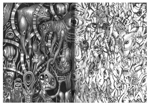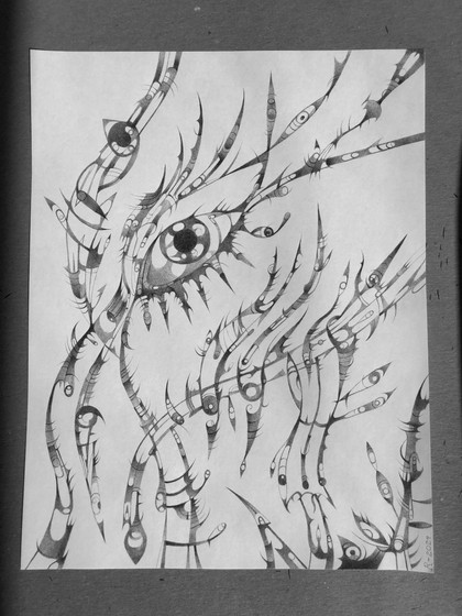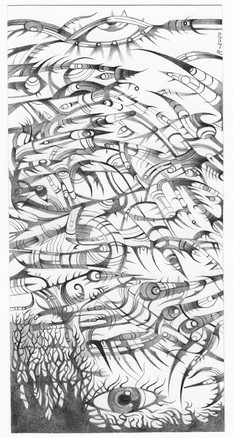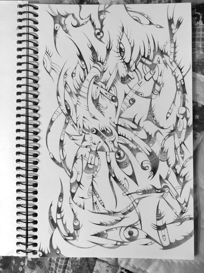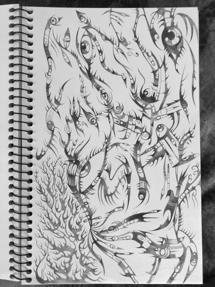 An abstract piece I drew in a sketchbook. Ballpoint pen on paper.Related content