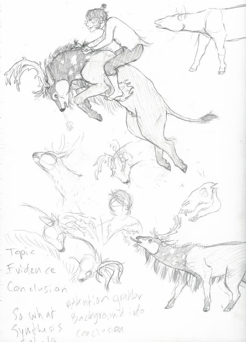 Most of the manilla envelope I've been working on in art. The top is a geture drawing/painting of a panel of my soon-to-be comic and below that is Löwe being demon-y (and with backwards faces because I suck). I remember asked for painted Löwe-demon a long time ago, so....ta da!