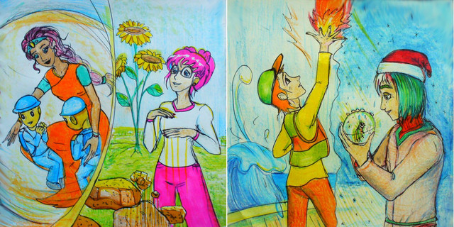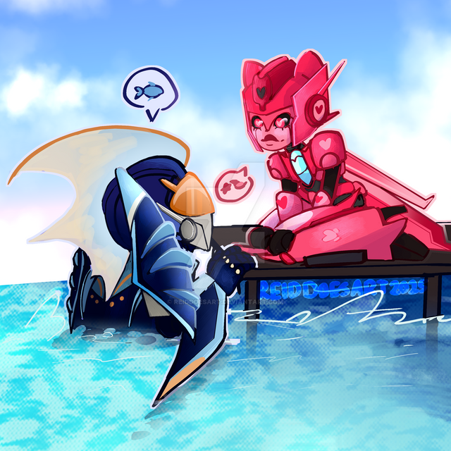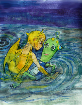 24-th of October already begins, and the picture is already ready, so, I'll submit it now too)Inctober's word for today is "splat". And, here are Lissai and Slapper, just having fan on a water, with splats of water)