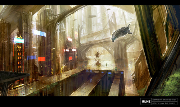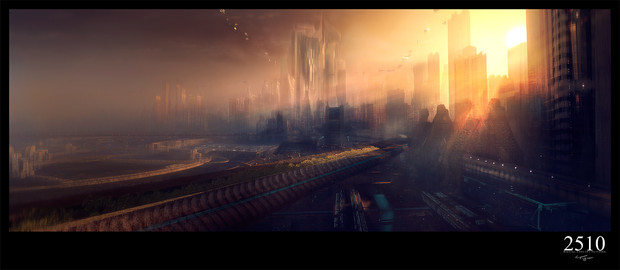 This is my benchmark painting for this year. It definitely is the biggest project i ever did so far. It also marks a personal milestone. I'm really happy with the result. The project involved 2d/3d work with Photoshop and Vue on the one side. On the other side i learned a lot more stuff on the compositing and animation end of things when it comes to camera mapping. At first i only wanted to create a neat looking painting with an option for a camera mapping animation. I never thought i'd try the animation part any time soon but when i was almost through with the actual picture i started to play. A few weeks, and countless hours of render time later, there was the animation.Technique wise i worked with a similar approach like on my 'Gates to Elysium' project from last year. More info on that can be found in the article on my site: [link] The animation part was more complex and i learned a lot. The camera movement through the scene and the ships as well as some other elements were rendered in different passes and combined in After Effects. Countless crashes included i managed to work myself through the procedure and tried to make the best of my abilities and hadware. If i ever have to thank my computer then i definitely want to do it here. My machine had to work like a... an... undescribable thing... to pull all that off.