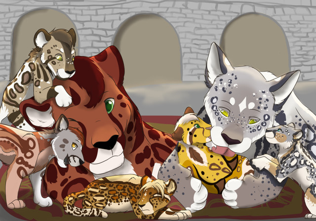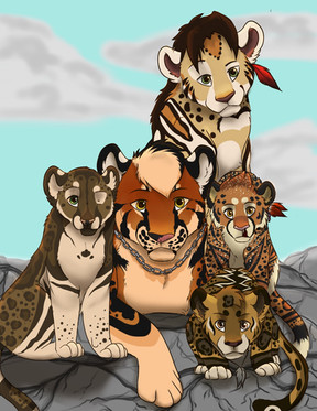 Just before the snow white rogue could snatch up the two young cubs a large tiguar leapt from behind the brush defending his cubs. The large tiger could easily over power the leopardess so she ran away quickly back into the woods."That was awesome dad!" Tumelo praised his father. Griffon looked at him and not too roughly bapped him on the head with a frown.
