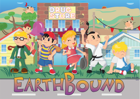 For years Earthbound had been on my to do list of JRPGs to play, you name a JRPG and chances are I've played it. So a few weeks ago I decided to finally embark on my Earthbound journey and had a great time. After completing Earthbound I can see why so many hold it in such high regard. From the humor to the wacky characters it turns out Earthbound was right up my alley. This illustration can attest to how much I enjoyed the game and while it won't ever hold the same reverence for me as its many fans its become one of my favorite of the JRPG genre. Now I just need to play Mother 3.PS: I'm well aware the middle Starman should be yellow/goldish but it didn't work with the piece so I flipped his colors around.