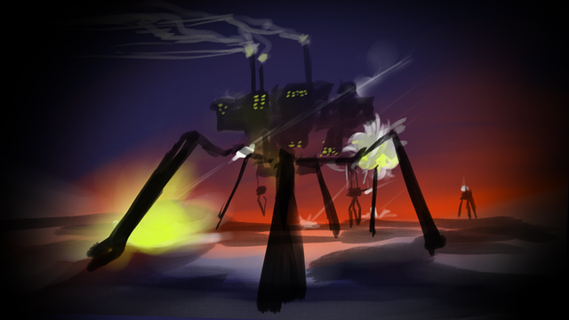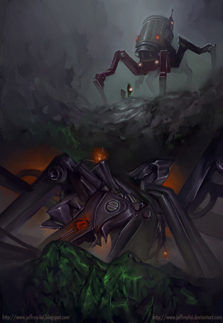 Is the big robot thingy holding a tiny person thingy? lol. Nice. Great colours and form. Lighting's pretty awesome too.