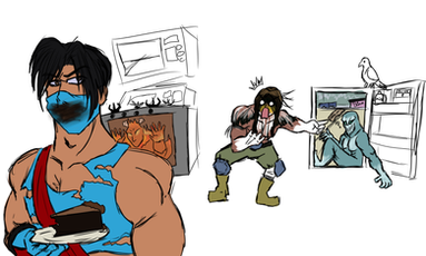a scary face, but since it's yugo, you know that internally, he's probably thinking about, like, hamburgersΒ