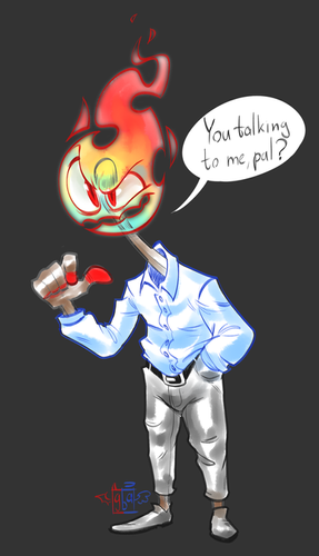 This fusion is mostly stoic, though the flames give way any emotion it may be experiencing. While Grillby and Papyrus are impressive in magical attacks, Hot Ribs prefers a fist-a-cuff fighting style. When they do use magical projectiles the burns from the attack deal a good bit of damage.