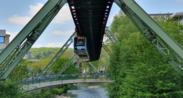 It's already been a long time since I've last seen the Wuppertal monorail..... and even longer for a GTW72. Anyways, these quite unique and interresting EMUs where the backbone of the city's public transport from the 70s until their slow retirement in the years following 2014 when one after the other got replaced by their sucessor GTW14. The 72s where always a bit hard for me to photograph as I hated most of WSWs ad wraps, yet most of the units where constantly painted in some of these. Anyways, enough of the talking.Number 17 in the really fancy and sadly not continued OG livery has just left Kluse station on a eastbound run along the curvy river's path.
