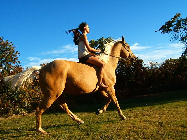 Me riding stallion Riva bareback after swimminghe-he, wet horsey!