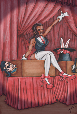This lovely assistant was sawed in half during a performance, and although Robert tried many times, he could never get the woman back together again. Eventually the pair found a way to use this to their advantage and make the show a roaring success.Partly inspired by Johnny Eck, "the Half-Boy" (1911-1991).