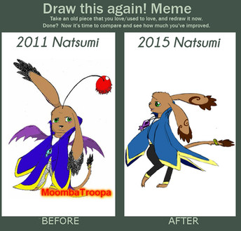 Maan sieht sofort wie sehr du dich verbessert hast. Die perspektive ist besset geworden die "erfassung der formen" und das shading is richtig gut. Und das inner half von einem Jahr! ich mag auch wie muni sich "verändert" hat. es sieht auch gut aus!
