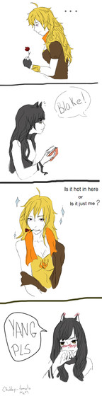 Yang:"Blake you know you can't resist! It's MUDA MUDA MUDA MUDA MUDA MUDAAAAAA!!"