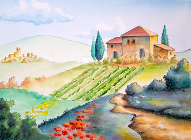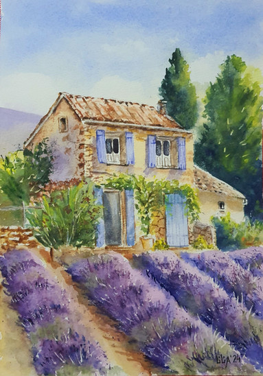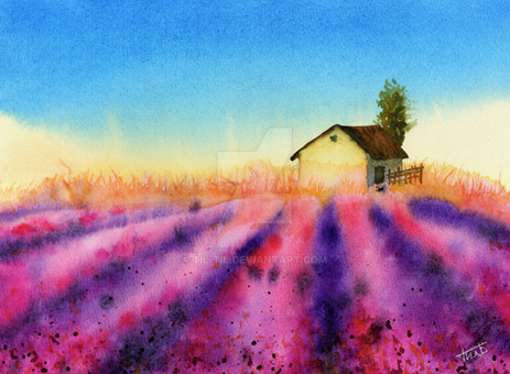 #field #house #provence #акварель #lavenderfield #lavender_field #aquarelle #countryhouse #landscape #lavender #trees #watercolor #watercolorpainting