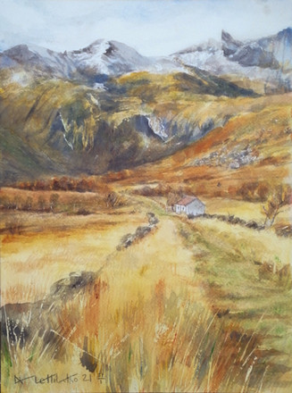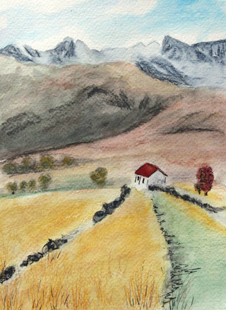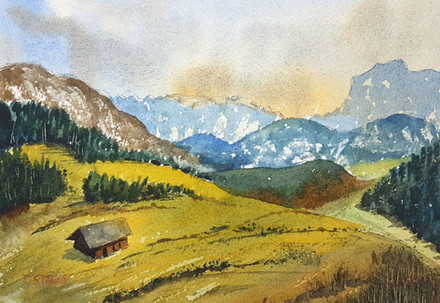#aquarelle #country #countrylandscape #landscape #mountains #seasons #spring #valley #watercolor #watercolorpainting #watercolorsketch #акварель #wintercolors #latesnow #акварельнаяживопись