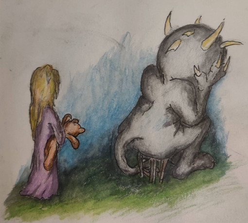 I felt like a painting from last semester was old enough, so here's a random illustration I did. Little girl kissing a monster's (in this case a ghost) booboo. Thought it might be cute to do and maybe eventually could be fleshed out into a children's book? Maybe, we'll see.PS. The painting in the background is a painting I did, i'll have to upload that sometime too.