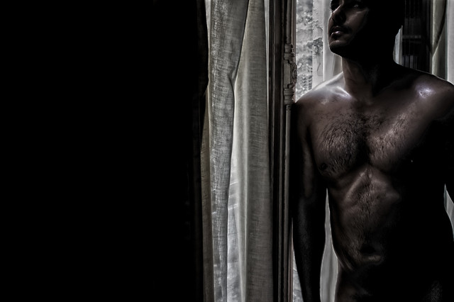 WOW! This is just exquisite! I feel as if I've just walked in on you and there's that moment of the shock of discovery...and the sight of you taking my breath away. A beautiful image of a utterly beautiful man! I love it!