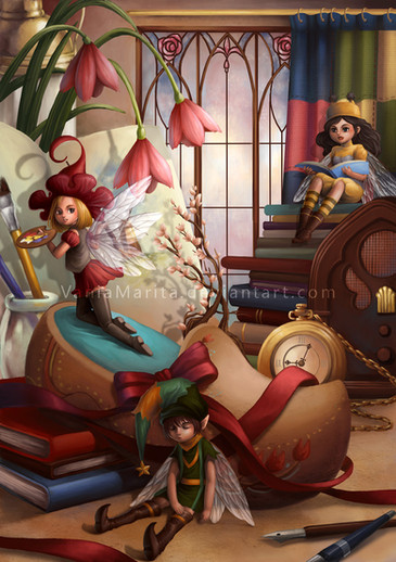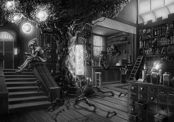 Title inspired in part by the lineart and in part by the magic that digital coloring has brought to my life in the last year! I think I'm falling in love! So many details in this pic! Some ideas were pulled from the sketch (*the detailing above the window sill and the contents of the drawers