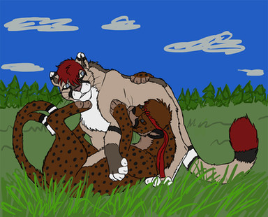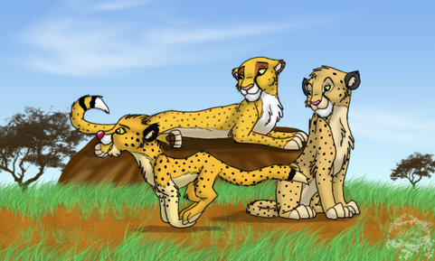 of course she is. She gets to spwat two silly cheetahs at the same time and then sit on them and eat a banana 8D