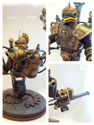 Steampunk GizmoDuck! Sculpted from scratch out of super sculpey firm, and plastic rod and tube. Painted with acrylic paint. He stands about 9 inches tall.Related content