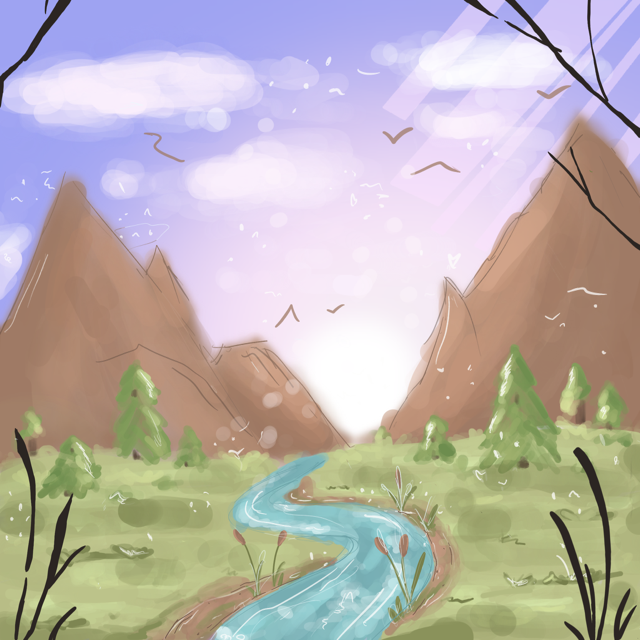 #digital #illustration #misty #nature #simple #stevan #universe #vector #waterfall #minecraft #art