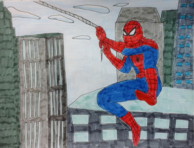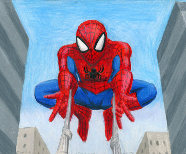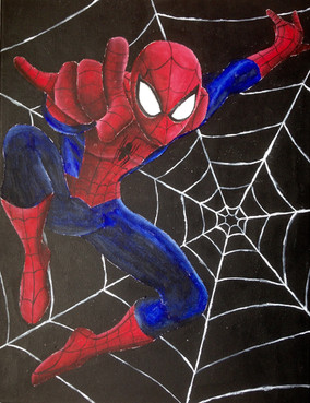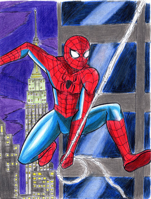 His foot got cut off and the colours look a bit different than it does irl because we don't have a very good scanner but I kinda liked how this turned out ^^ It's pretty much the most stereotypical Spiderman pose, but I mostly wanted to practice ahahRelated content