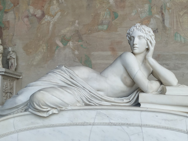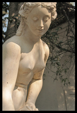 Some backstory on this...the statue shows a young lady in period attire semi-nude. This is because the original model or maquette was done as a complete nude with the sculptor later clothing it in clay accessories and canvas or muslin dipped in clay bisque. As he created the maquette, he decided it looked better as a semi-nude.