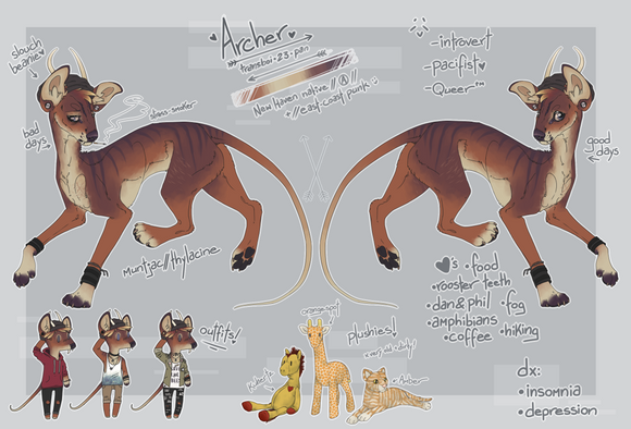 #anthro #archer #fursona #hybrid #muntjac #oc #thylacine