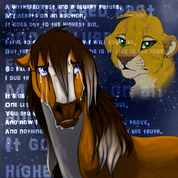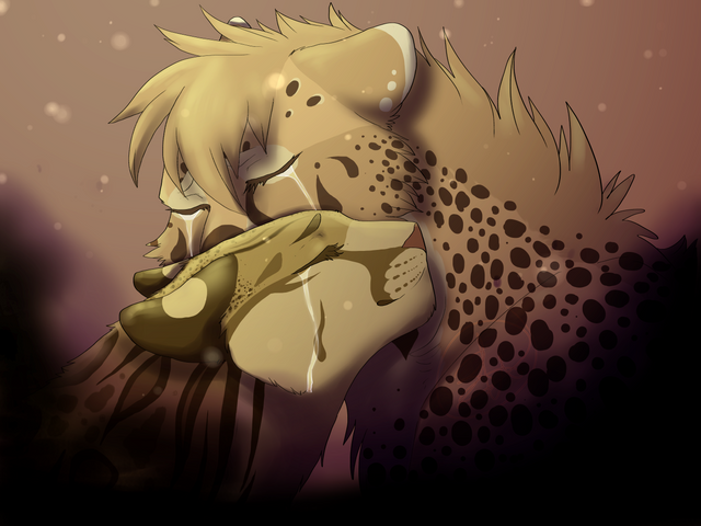Aahh, this is so beautiful! They are both looking so pretty, I love Kohao's mane, and the feline looks so pretty! I like how the picture is somewhat happy hopeful-ish and kinda sad at the same time. Like, it's sad, but at least they are together and will keep going. Something like that.