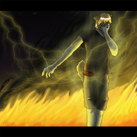 ~As the flames whither, she watches in a gaze of blue sorrow, as if fascinated by prey~