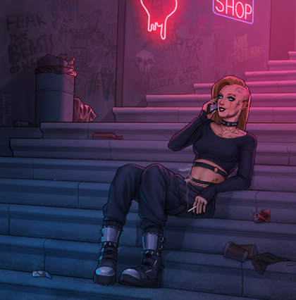 #alley #alleyway #brickwall #chey #cheyenne #city #cityatnight #dark #edgeofinfinity #edgy #eoi #goth #neon #neonsigns #night #nighttime #stripclub #nonbinary #nonbinarycharacter