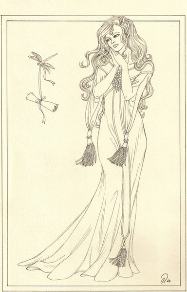 i loved the line art she made she hasnt read this part of the novel yet but i gave her the idea for ainions mom and the little description do yopu remember the part where he sees his mother? you should do some rh art if your not tired of it lol