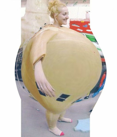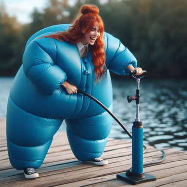 Not knowing what was happening she floated up so much the hole became taught. She tried to reach it but she could not reach the hose because of her hole body being inflated. The hose popped out of her mouth but her lips sealed up so none of the gas escaped.