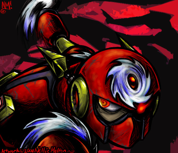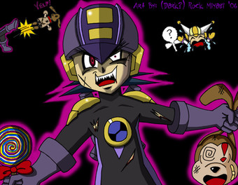 Bass is the leader of the Hell Rollers, the chief rivals of the MBs. This dude has a major attitude problem and an even worse temper. Better keep out of his way whe he goes tearing up the streets or else he'll turn you into his newest canvas to display his work, whether you like it or not!EDIT: Okay people, there's a reason why I chose to name his JMR incarnation "Bass" instead of "Forte". It's so I could use the design on his shirt which, by common sign convention says "no fish." Or given the context of the character's name, "Bass is not a fish." (It's just meant to be a generic fish, not any one specifically.) This wouldn't make any sense if I named him Forte.