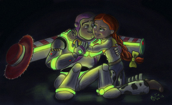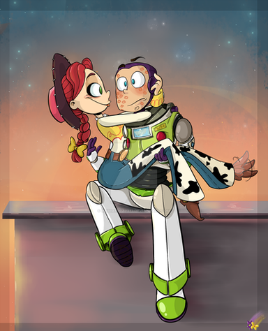 This literally brought the biggest grin (possibly that I've ever grinned) to my face! I have never loved Buzz and Jessie together (even if you didn't intend for this to be romantic) more! It's just such a beautiful pictures. The cloud background is perfectly true to the movies, and I love their poses and the looks on their faces! The colors also blend really well and are really bright without it being too much. This is gorgeous and adorable, wonderful work!