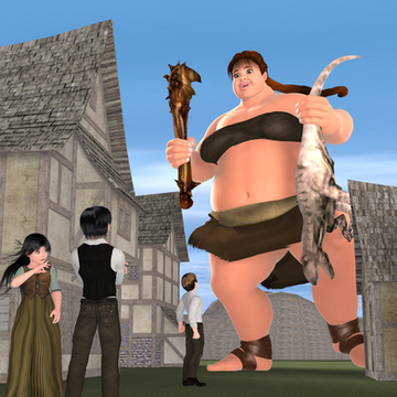 And it seems like a nice scene of how a fantasy giantess might interact with normal sized people. I'm sure one day of her hunting could provide meat for the whole town for a while. And the money she gets for the sale, she can get services like like blacksmithing and tailoring from the townspeople.
