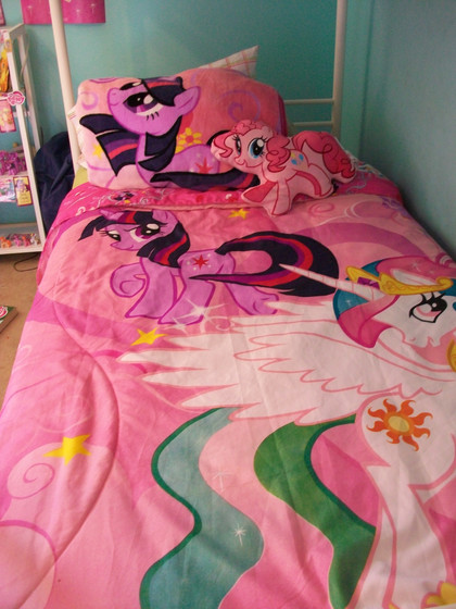 This is for Heartbreak, the OC from Jet_Black's My Little Heartbreak over on FiMFiction. I was going for 'adorably psychotic' (yes, HB - I called you adorable). I think I got pretty close. I plan on doing a t-shirt with this and her cutie mark, and one of the phrases from the story ("...swirling vortex of insanity from which there is no escape...").Related content