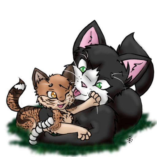 In a concealed crevice that was hidden under draping lichen, was a small warm den, filled with soft moss, leaves, and feathers, making the perfect nest. Two figures sat together, side by side, sharing an intimate moment while they could, before the duties of the day tore them away from each other. Timidbreeze, the smaller tuxedo female, rasped her tongue across her mate's forehead in a gentle and smooth motion. She continued this until he stopped his slight shaking. A purr rumbled deep in his throat, greeted by one of her own. “Better?” She asked, green eyes giving him a once-over to be sure he seemed okay. The tabby tom nodded, rubbing his cheek against hers, “Yes. Thank you.” She gave him a look, one of disbelieving. “Fallenstar, your nightmares are getting worse,” she stated, “Maybe Cloudjumper has something you can take to help you sleep better?” He waved her off with a swish of his tail as he stood, “I’m fine,” he reassured her, “They’re just bad dreams. I can handle them.” Timidbreeze watched him push the lichen back to peer out at the camp, her ears flicking down. “Talk to her at least,” she asked him, almost pleaded, “for me?”