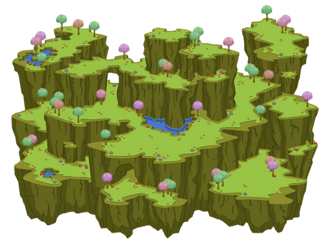 looks like it's modeled after the maps in FFTA, my favorite game~! <3 you're very good with pixel work! oh, by the way, what do the terms "isometric" and "non-isometric" mean?