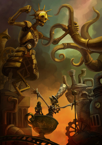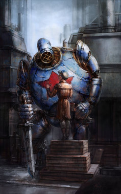 This image was part of an assignment where we had to pick a music genre and create a world based on it. I chose "Chanson" as a music genre (Edith Piaf or Jacques Brel for example). The genre in itself reminded me a lot of Paris and it's amazing nightlife in the early 20th century. So i built my own Paris, with some fantasy elements in it.In this image we are in the middle of a concert (if that wasn't clear). The gigantic robot is there as both (mostly) a monumental decoration and as protection for the artist. If anyone would attempt to climb on the stage, the robot (or at least the one controlling it) will make sure he'll find his way back into the crowd.