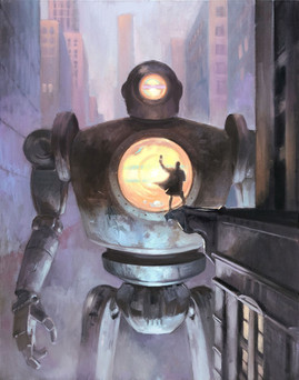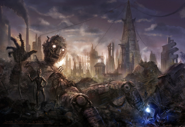 i really like the glowing lights and the perspective! ! interesting theme too, nobody would dare create mischief with the robot around ..