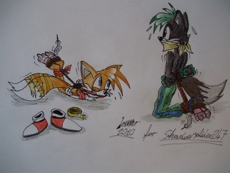 Man, that didn't take long for me to draw GID of Tails. But hey, I'll give you some context for what's happening hereSo, Sonic and Tails were out getting something to eat (probably Chilli dogs and mint candy let'sbe real here). But Tails was like "Nature calls" and left to find the bathroom, and so he ran off to find the loo. Later, as he finished someone ran up to him shoved him in a bag, and then bolted outside. Tails eventually woke up tied up in some run down building with an... odd looking doll next to him. Now Sonic is left wondering where is basically little brother went.