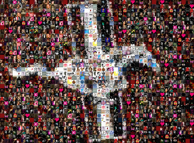 Since I really don't have time to sift through all the copyright arguments, I was just wondering what program you used to make this? Did you place each picture in there individually? I'm trying to do something similar to this for a self-portrait art project and I'm not sure what this type of technique is called. Any info would be helpful!