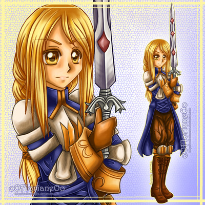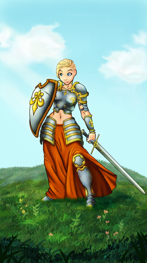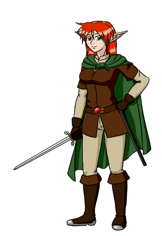 Over the years as I've played this character in D&D, my halfling cleric Callie has changed her appearance. Went from straight, short hair that she did up in ponytails to having long, wavy hair. I decided against the bow in her hair because that might get uncomfortable / frazzle her hair whenever she pulls her hood up.I tried to go for the standard "complicated adventurer gear" look, but Callie's soft appearance just didn't wanna. Her sword is good enough contrast anyway. Kept the white mage look, although I changed her outfit in general. Her arm is covering the neck/upper chest, so you can't see the chainmale there like in the old pic, but at least you know she has chainmale on underneath thanks to the part in her sleeve. Anyway... the pic turned out overly simple, which I guess, in the end, is just how Callie should look.