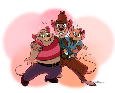 My end of an art trade withHis mouse character is named Chip, and I thought "Boy... popular name..." so I decided to put his character with the characters named Chip that I knew off the top of my head. Chip Chase from "The Transformers" is the human. Chip from "Chip and Dale's Rescue Rangers" is the chipmunk with the detective outfit. Chip from "Beauty and the Beast" is the... well.. tea cup. And, of course, ~screechingsamick 's character Chip is the mouse doing a "tada" for us while inside the tea cup Chip. This was fun, but I kept procrastinating. Which is why it took forever. Hope it was worth the wait, ~screechingsamick !! Enjoy.