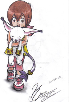I drew this for my brother's birthday!This is Christopher (which also happens to be my bro's name) from Sonic X (the new Sonic anime based on Sonic Adventure continuity). He is holding Kitau (The tarutaru my brother plays on Final Fantasy XI) in his arms. Hope you enjoy this!